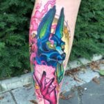 Tetování egyptský pes s rukou na lýtko