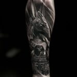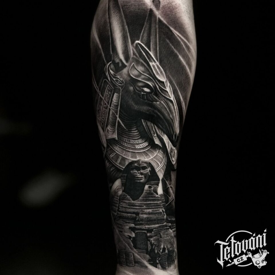 Tetování egyptský pes, znaky a symboly na předloktí