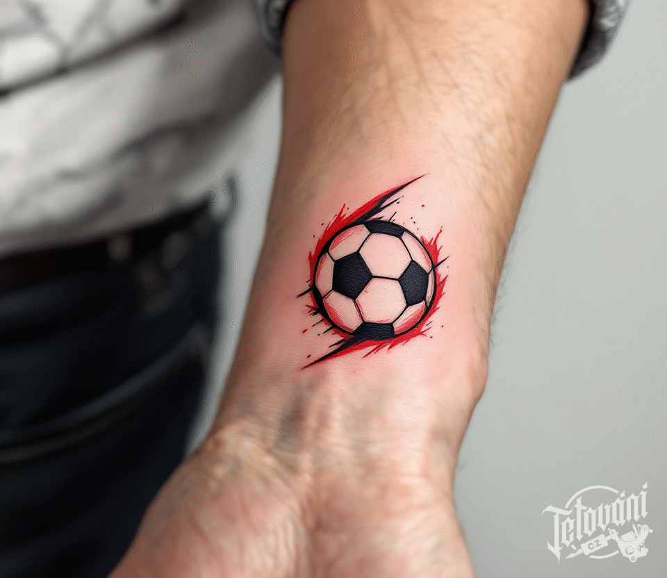 Tetování fotbalový míč na předloktí