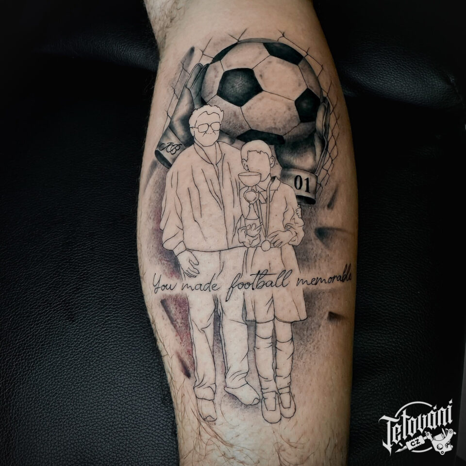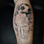 Tetování fotbalový míč otec a syn na lýtko