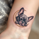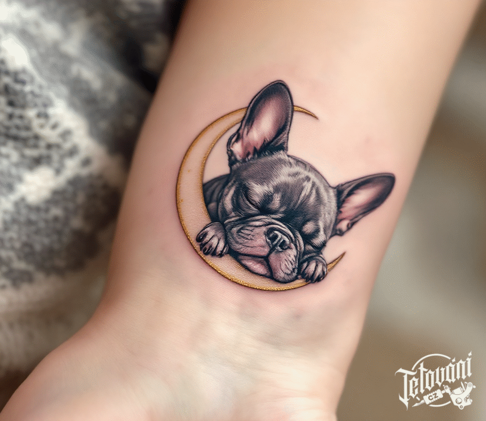 Tetování francouzský buldoček s Měsícem na zápěstí