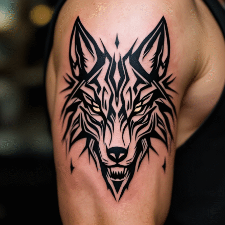 Tetování futuristická hlava vlka na rameno