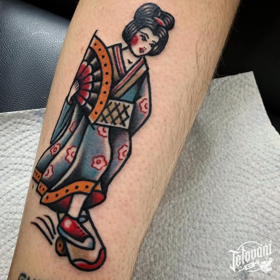 Tetování gejša na předloktí