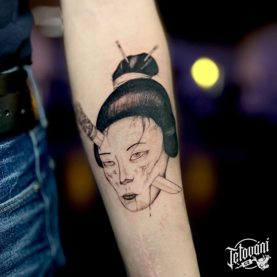 Tetování gejša na předloktí
