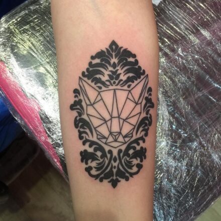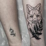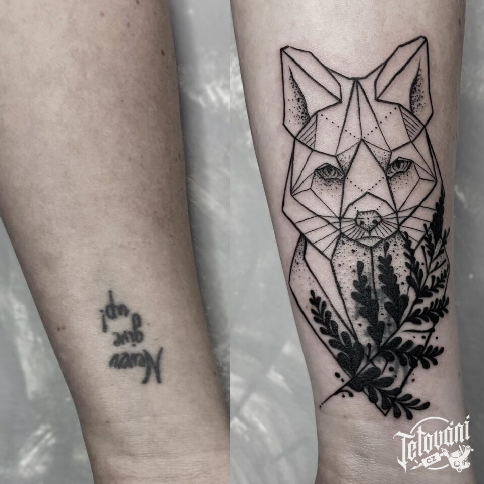 Tetování geometrie, zvíře liška, luční kvítí na lýtko