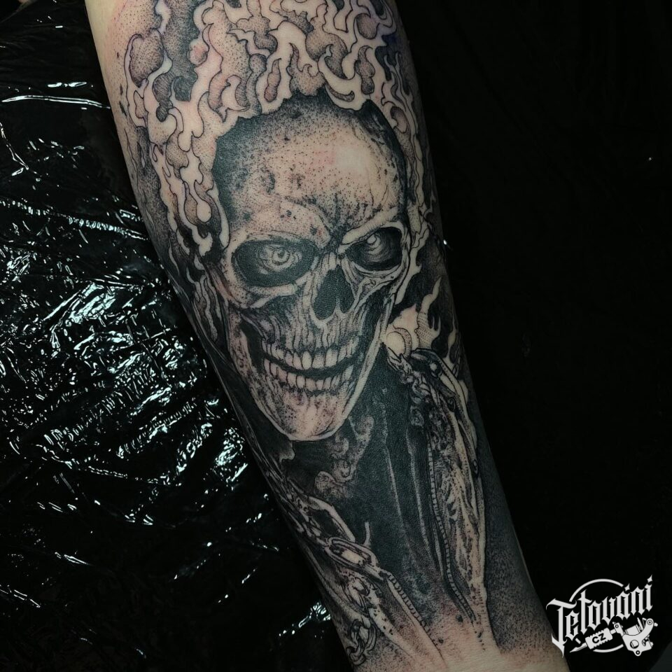 Tetování ghost rider z filmů a pohádek na předloktí
