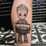 Tetování Groot z filmů a pohádek Marvel na lýtku
