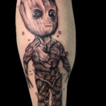 Tetování Groot z filmů a pohádek Marvel na lýtku