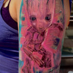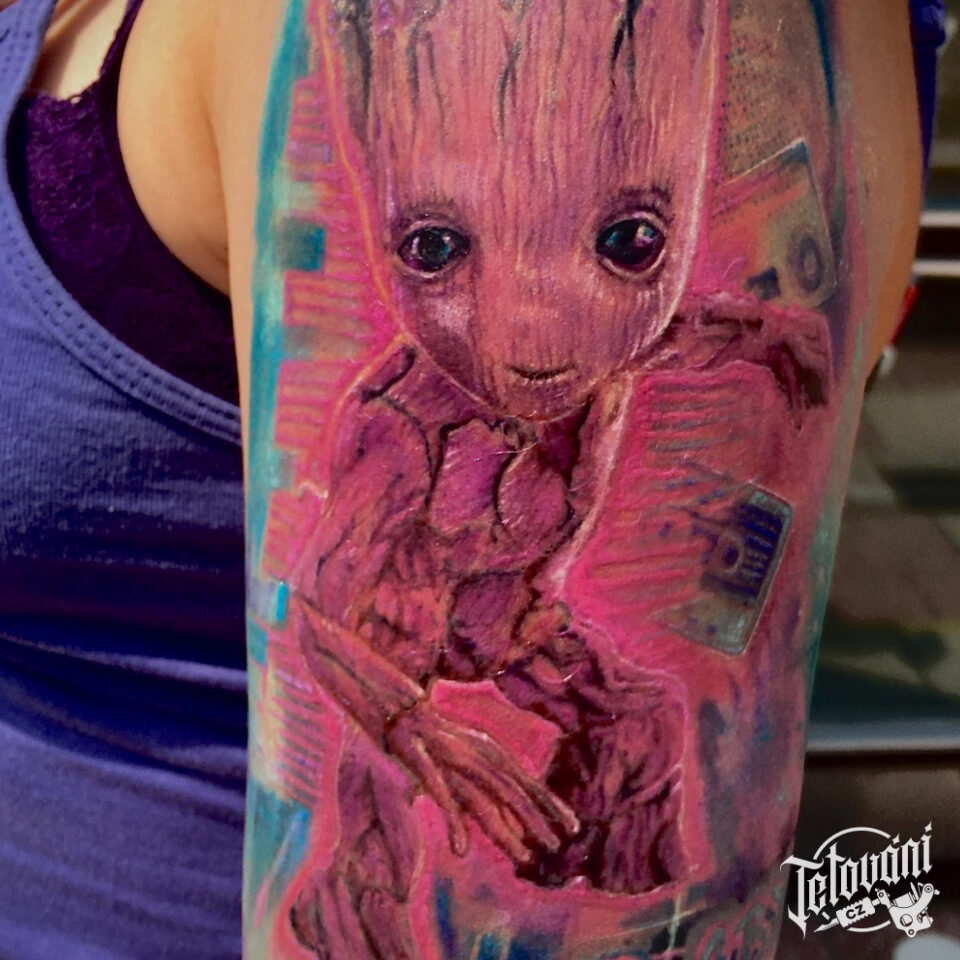 Tetování Groot z filmů a pohádek Marvel na rameni