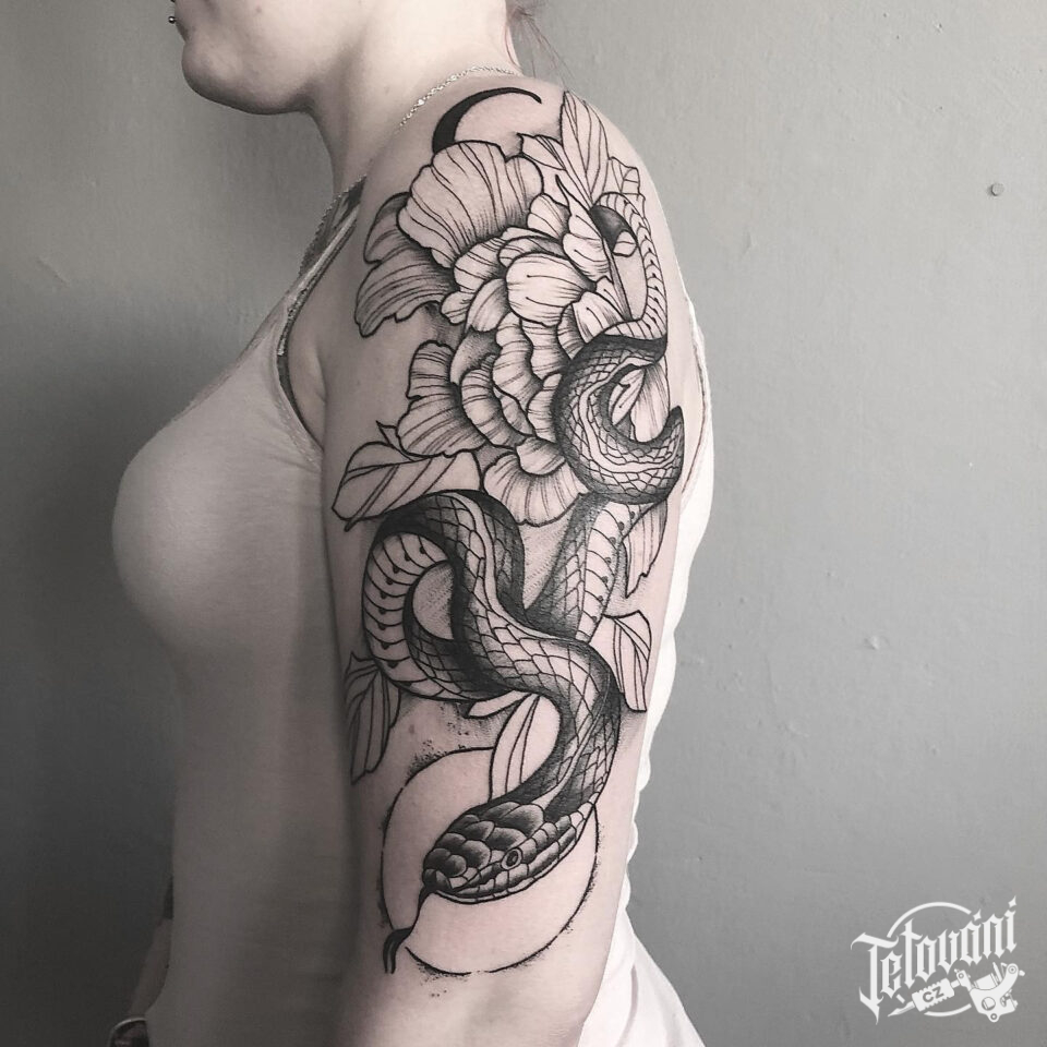 Tetování had a květiny n...