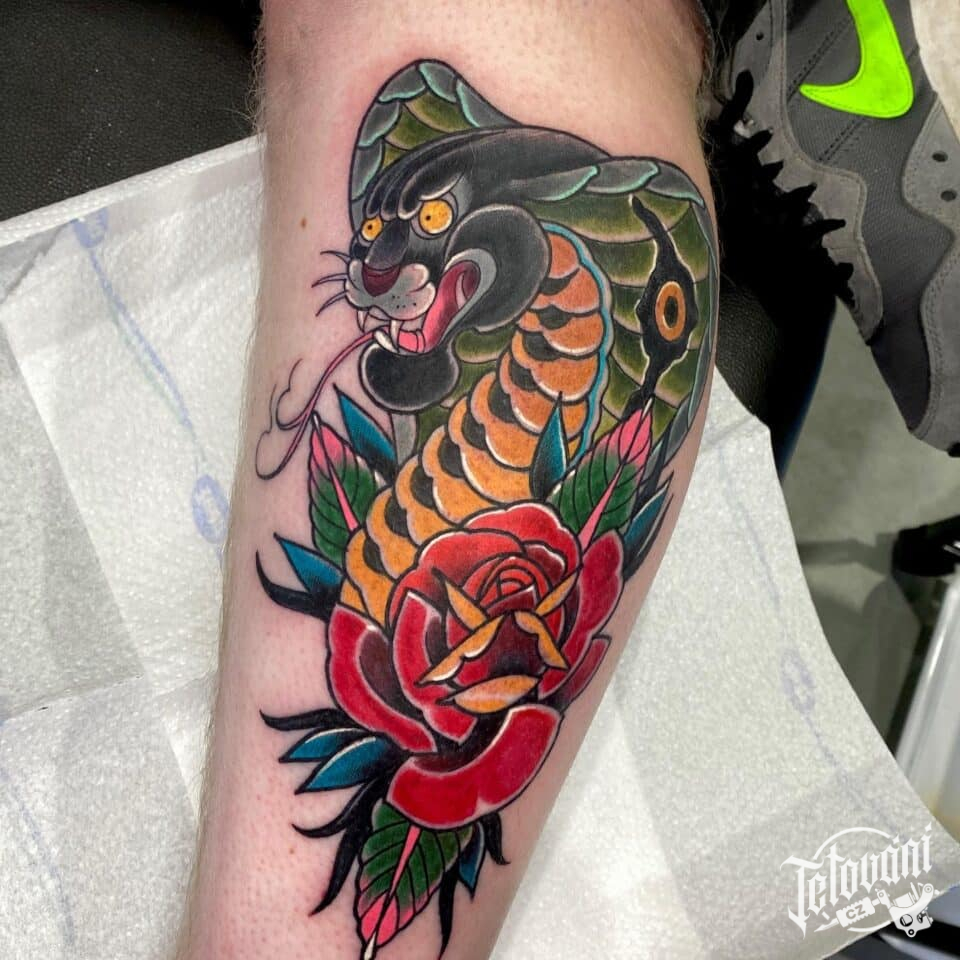 Tetování had na lýtku
