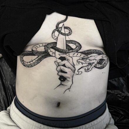 Tetování had, ruka, znaky a symboly