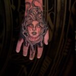 Tetování Medúsa, mýtická bytost, zvířata hadi na hřbet ruky