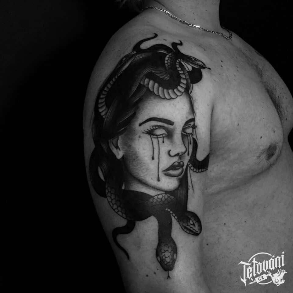Tetování mýtický bytost Medúsa, žena, hadi, zvířata na rameno