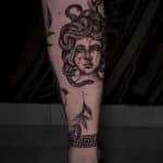 Tetování hadí žena, zvíře, had, větvička stromu na lýtko