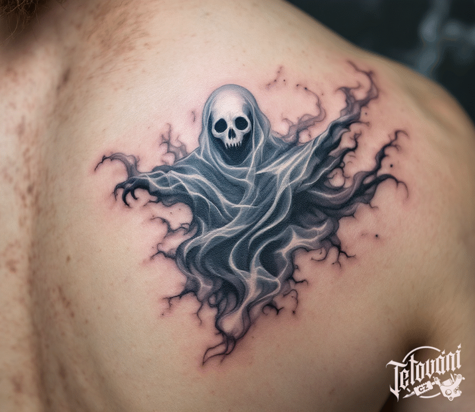 Tetování halloween, duch na lopatce