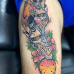 Tetování Hannya Maska s květinami na noze
