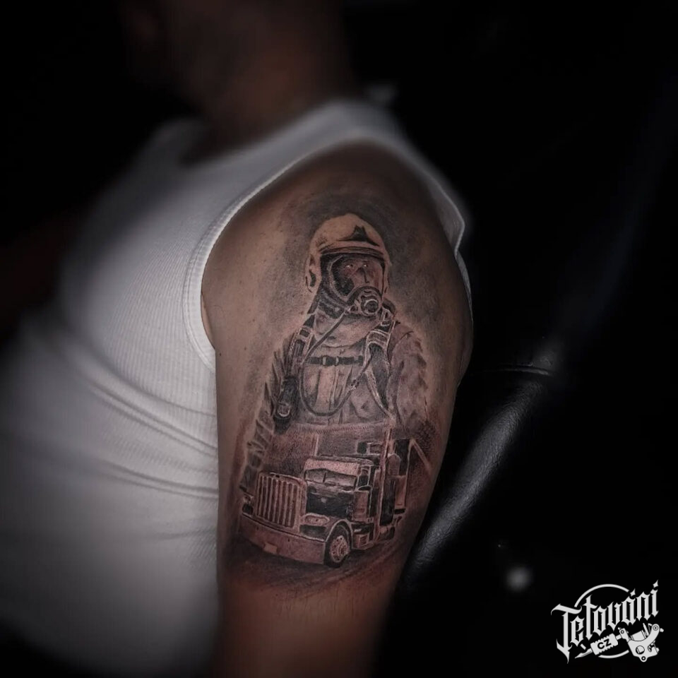 Tetování hasič na rameni