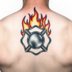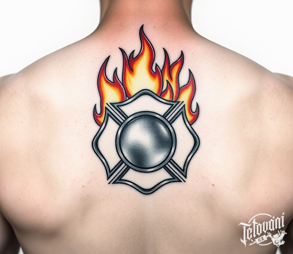 Tetování hasiči, oheň na zádech