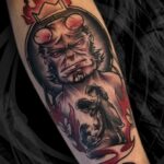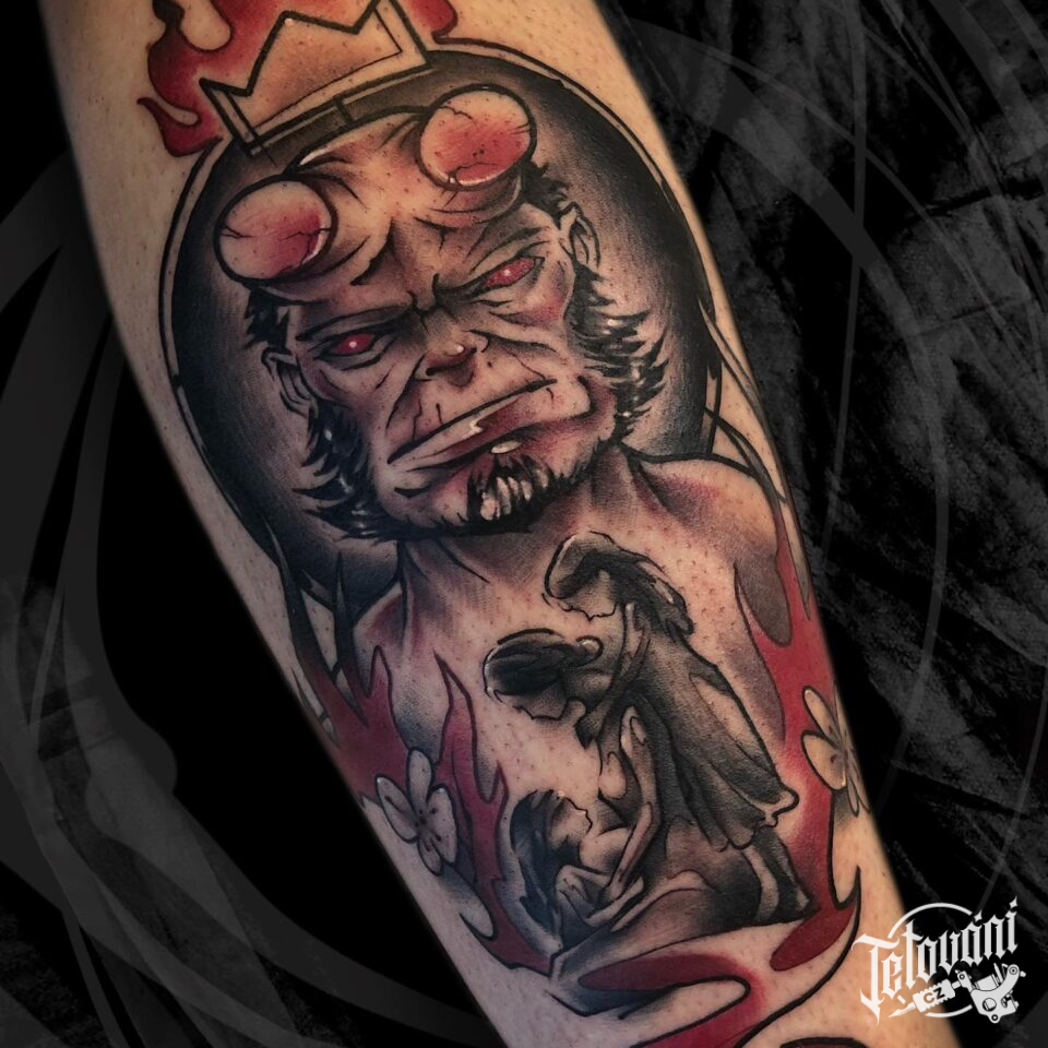 Tetování Hellboy z filmů a pohádek na předloktí