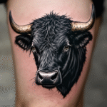 Tetování hlava býka na stehno
