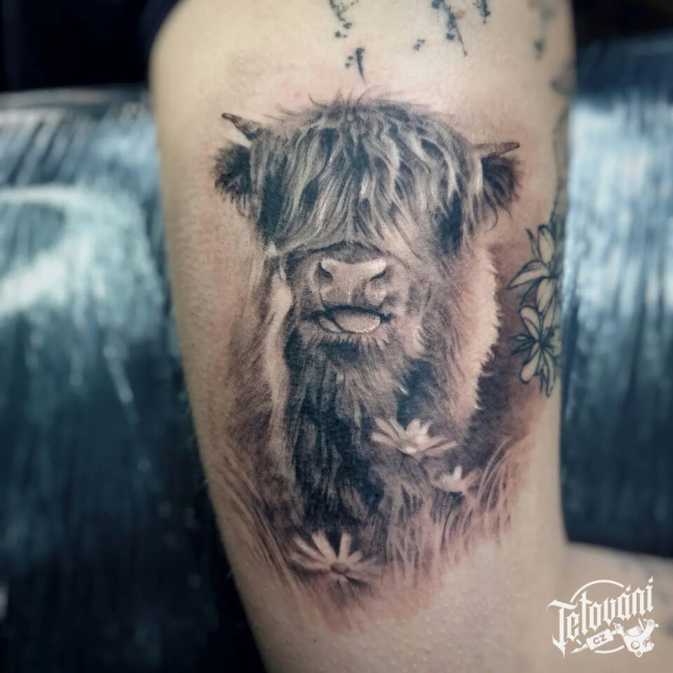 Tetování hlava býka, zvíře, býk znamení zvěrokruhu na ruce
