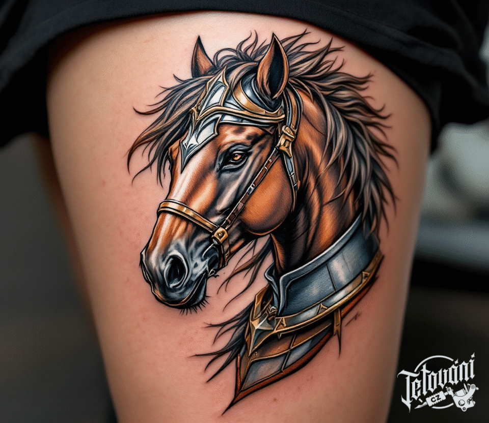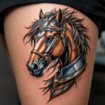 Tetování hlava koně na bok stehna