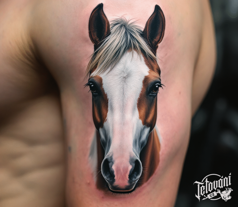 Tetování hlava koně na rameno
