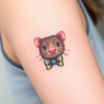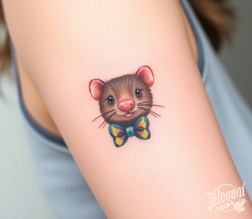 Tetování hlava krtka s mašlí na ruku