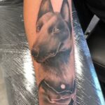 Tetování hlava psa na předloktí