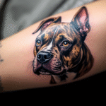 Tetování hlava staforda na předloktí