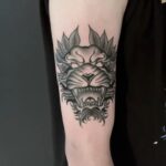 Tetování hlava tygra, symboly síly, ochrany na rameno