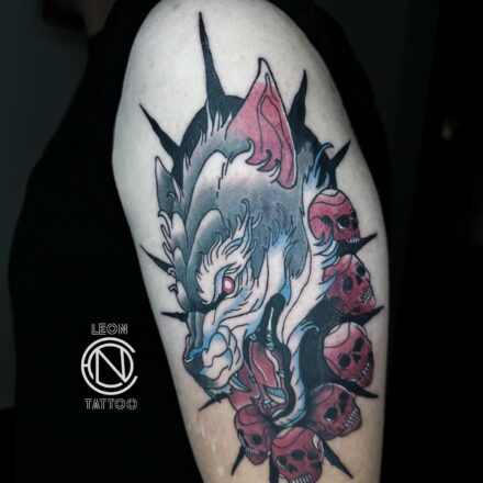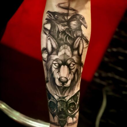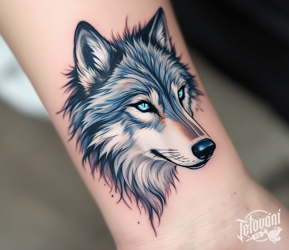 Tetování hlava vlka na předloktí