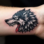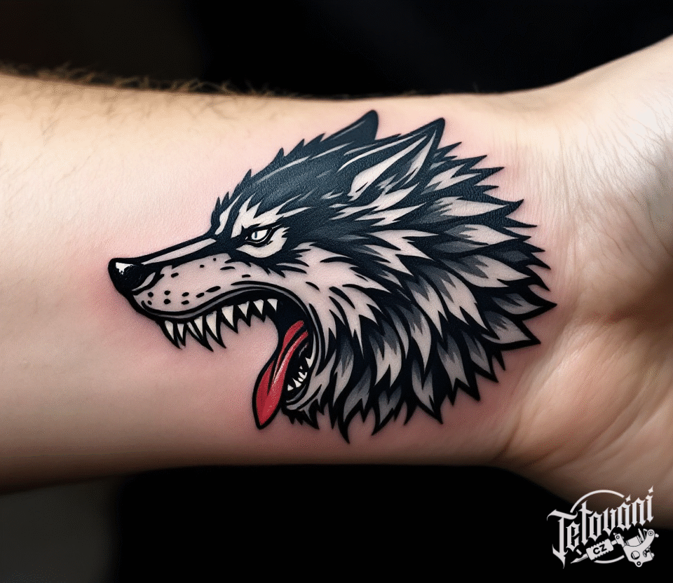 Tetování hlava vlka na předloktí