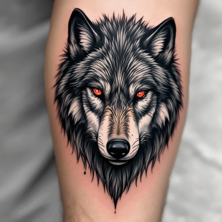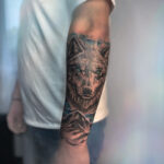 Tetování hlava vlka, zvíře, příroda, hory les na předloktí