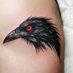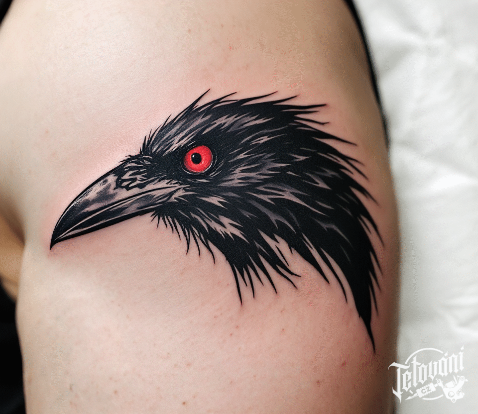 Tetování hlava vrány na rameni