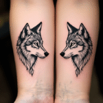 Tetování hlavy vlků na předloktí