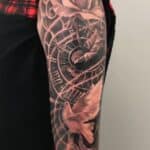 Tetování hodiny a růže, holubice, zvíře, květina na rameno