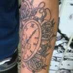 Tetování hodiny a růže na předloktí