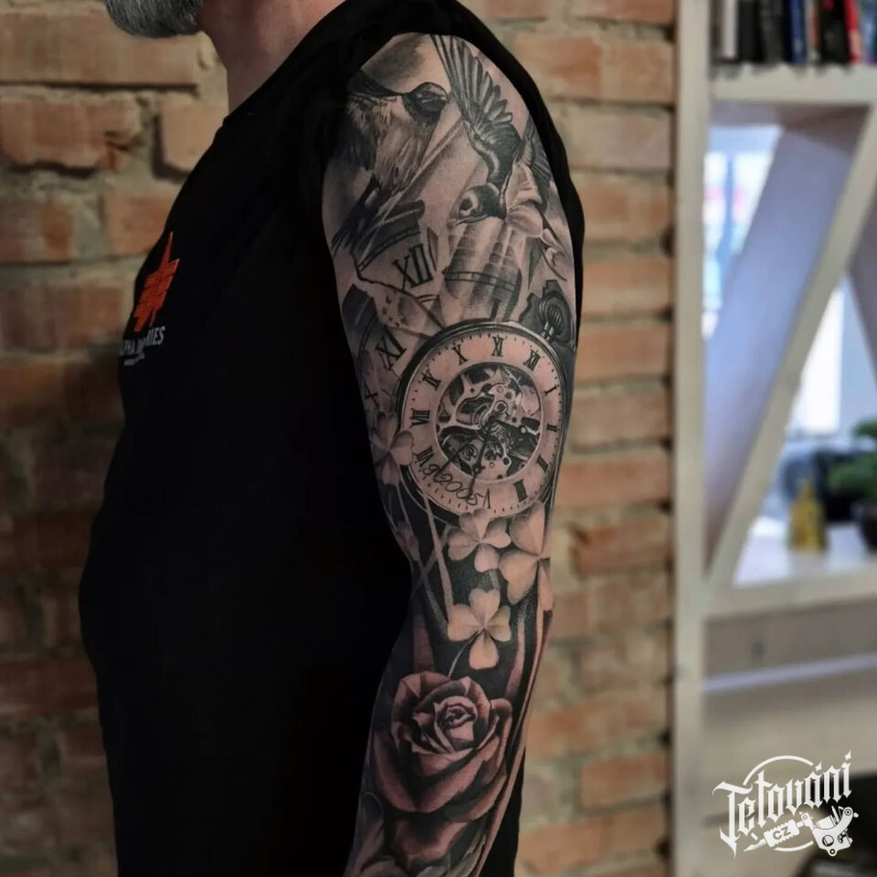 Tetování hodiny a růže ...
