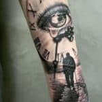 Tetování hodiny čas, oko, cestování a moře na předloktí