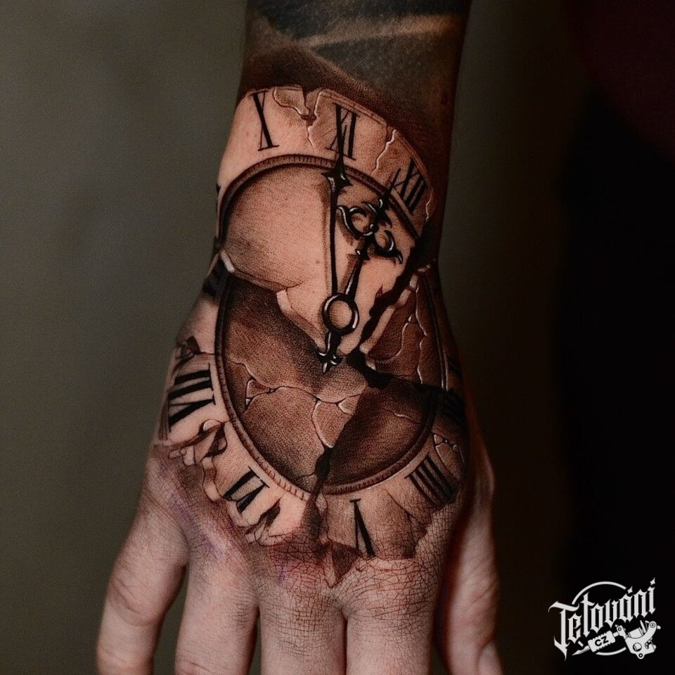 Tetování hodiny na hřbetu ruky