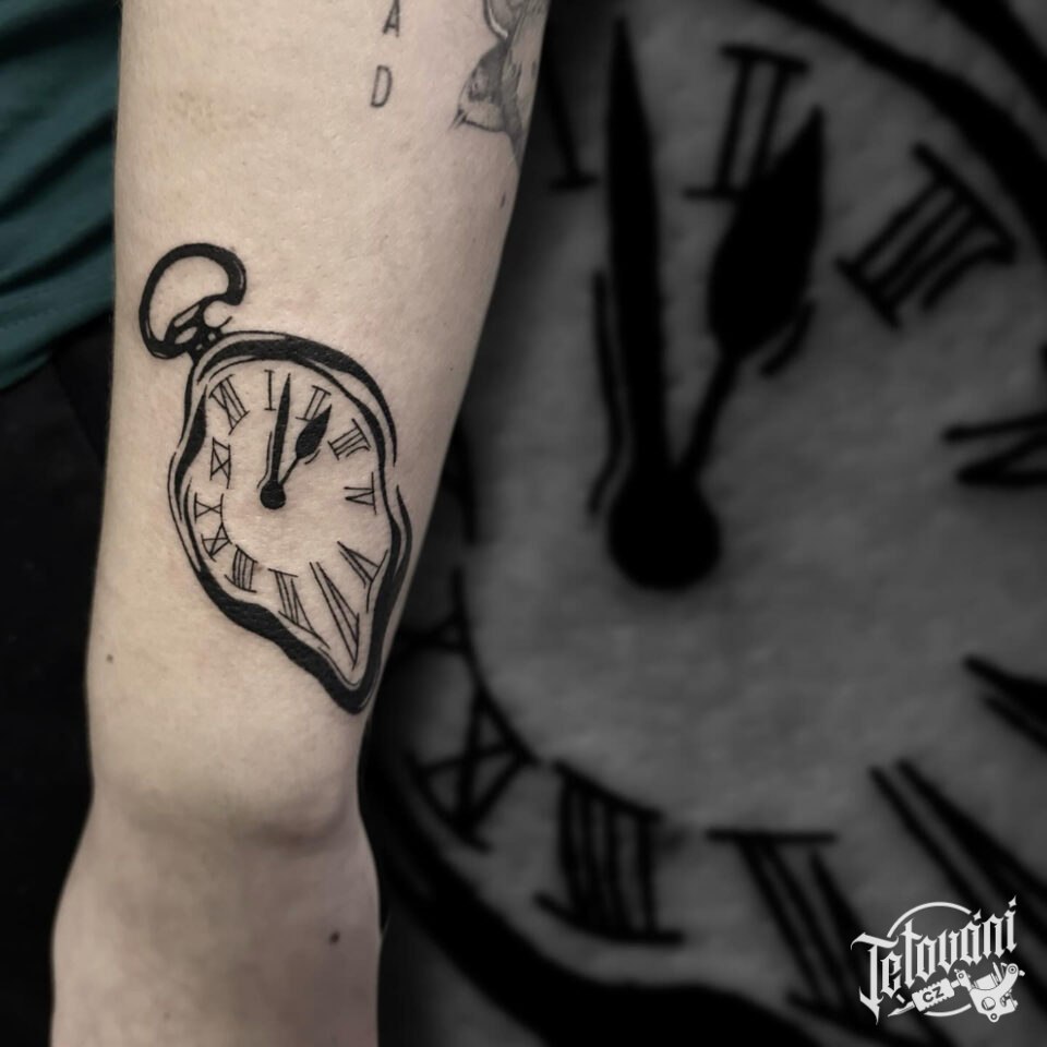 Tetování hodiny na loket