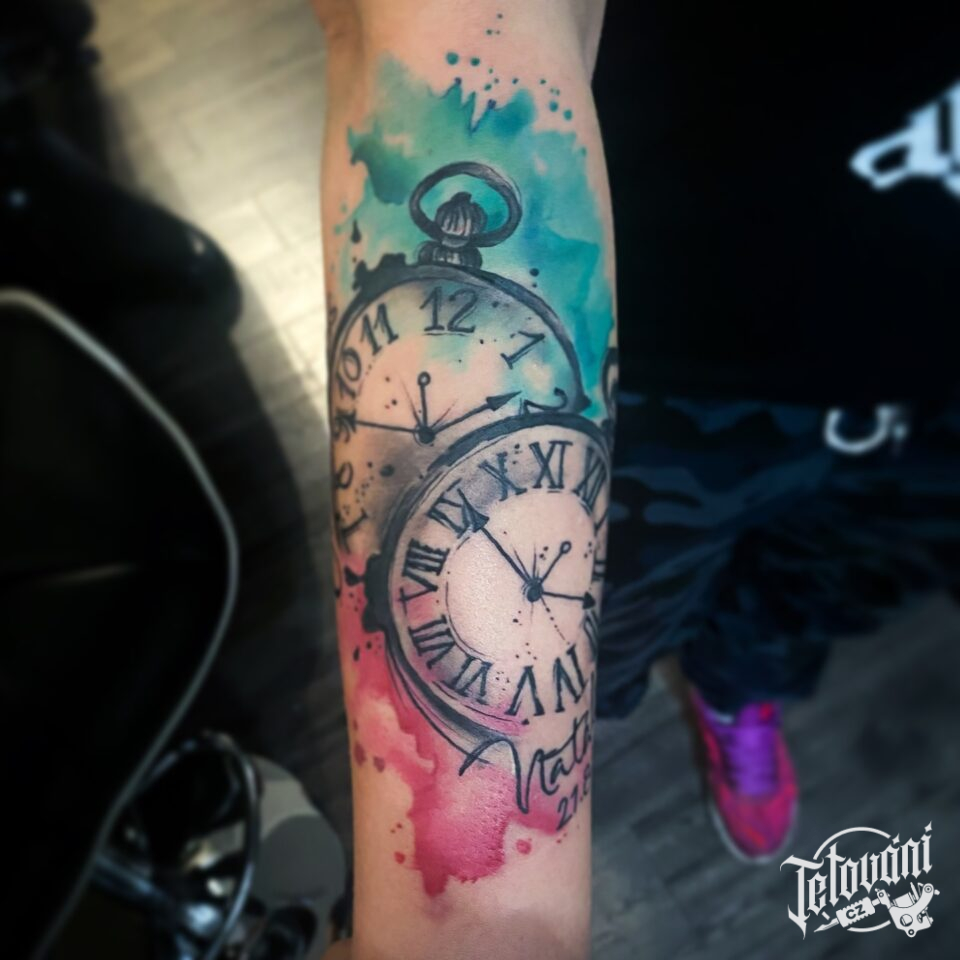 Tetování hodiny na předloktí