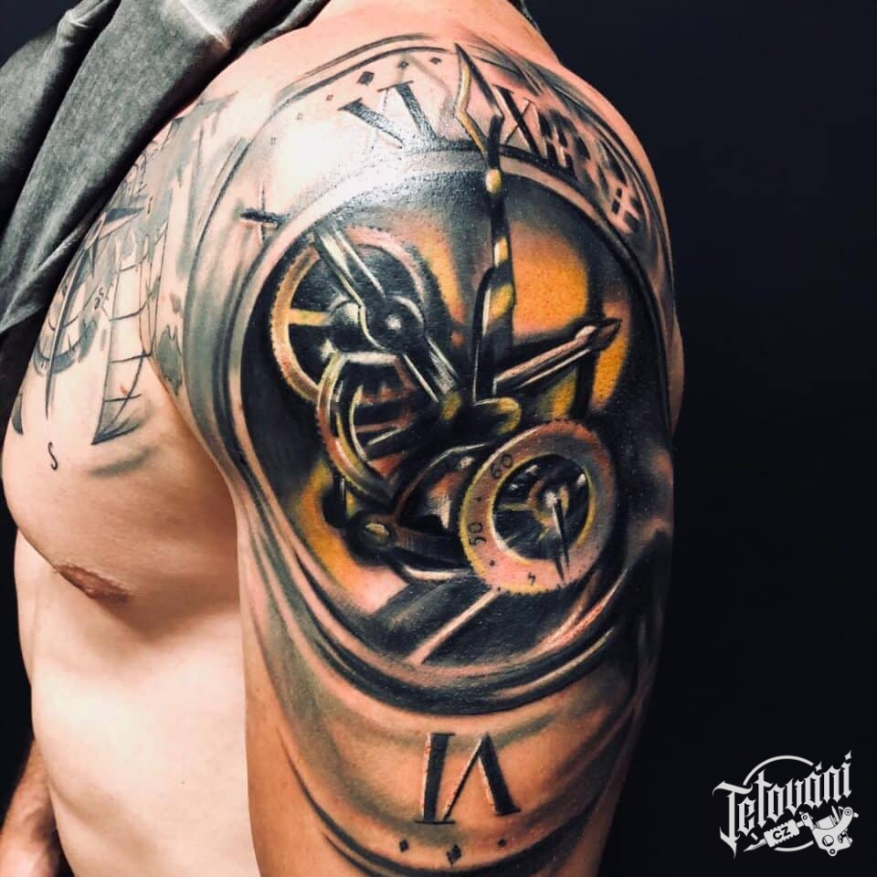 Tetování hodiny, písmena, čísla na rameno