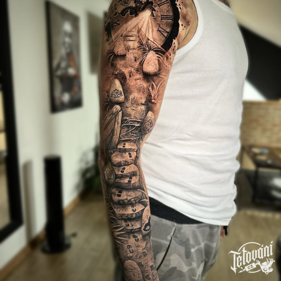 Tetování hodiny, života a cesta, rukáv