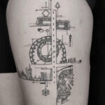 Tetování hodiny, vlak na bok stehna