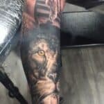 Tetování hodiny, zvířata, lev a sova, rukáv
