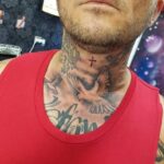 Tetování holubice na krk