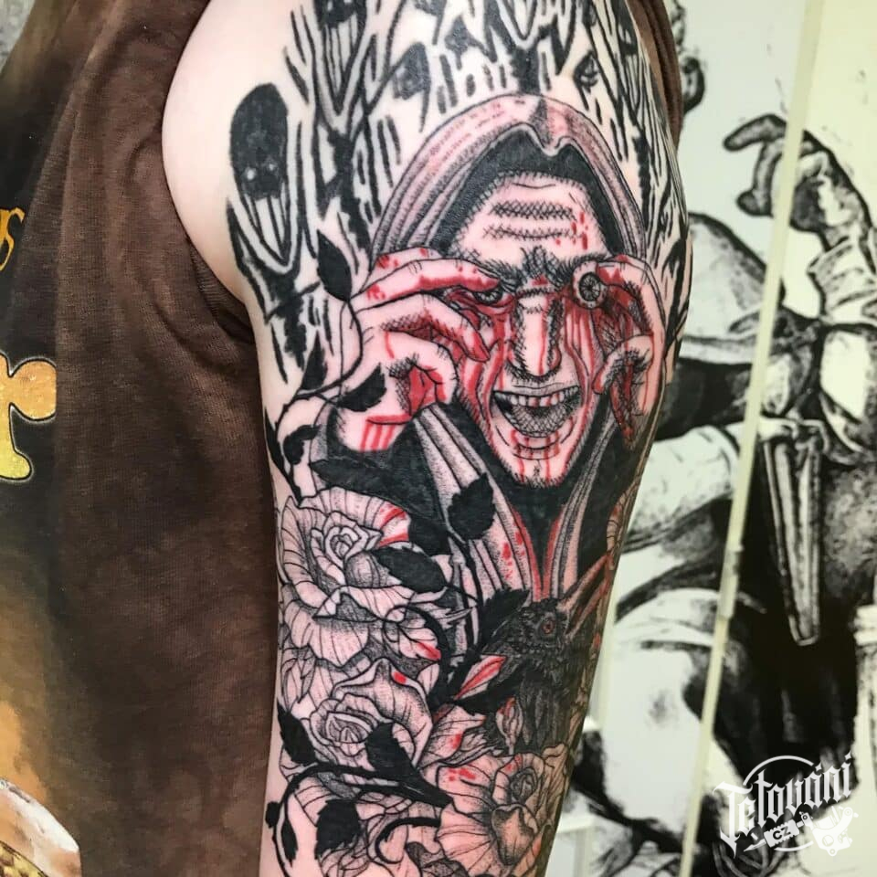 Tetování horor z filmů a pohádek na rameno